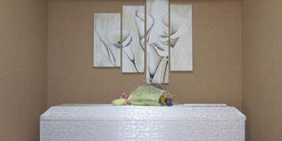| 室内用生花 | 窓付内外高級布貼り新棺 |